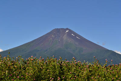 8月8日このところ富士山周辺の天気は良いのに富士山の周りだけ雲が多くスッキリしない日が続いています。 それでも朝晩は雲が晴れて、大変くっきりとした富士山が現れる日があります。 富士山の雪もさすがに溶けて、あとは吉田大沢の白山岳下と小御嶽流しに最後の残雪を残すだけになりました。 青富士 左の河口湖の写真は7月15日ですがこの時期はラベンダーがきれいで、このようなダイナミックな吊し雲が良く見えます。 富士山の残雪は線状になり、山頂までヤマハだが見え、群青色になります。 初夏の富士です。