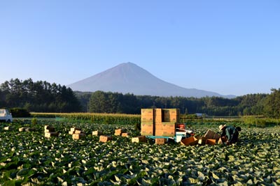 キャベツの出荷に忙しい鳴沢村の富士