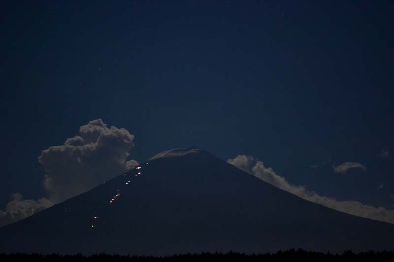 | 9月に入りました。 連続しているのに、9月の声を聞くとなんとなく秋だと感じるのも不思議な気がします。 確かに季節が変わったように、雲が多く、昨日までの暑さは和らいでいます。 8月下旬は快晴が続きました。 世間では酷暑が続いたようです。 ニュースでは、雨がなく、鳴沢のキャベツは大きなダメージを受けているとのことで、心配です。 ところで我が富士山は、毎朝、目を見張るような容姿を惜しげなく見せてくれました。午前8時頃になると恥ずかしいわけではないでしょうが、雲の衣装をまとってしまいます。 そんな訳で早朝は毎朝シャッターチャンスでした。 一度ぐらいはきちんと赤富士を撮影しておきたいとガソリン代を気にしながら、ここで撮らないとしばらく赤富士の撮影ができなくなると、自分で言い訳を考えて毎朝暗い時間から車を走らせました。 写真家の人は車で泊まるようですが、そこまでできないのでひたすら早起きです。 A 8/25早朝鳴沢は真っ暗でしたが、東の空が燃えるように真っ赤になりました。このタイミングで山中湖方面にいれば、すばらしい赤富士が撮れたかも知れません。車中泊したくなります。 実際には山中湖や忍野では、早朝モヤが立ちこめて富士山どころか湖面さえ見えない日が続きました。パノラマ台か北富士演習場ぐらい高い場所に行ってモヤから出ないと赤富士に出会えないのです。赤富士に出会うのも大変です。 B モヤは時として、幻想的な風景を見せてくれます。8/24早朝、山中湖から忍野に山越えの道を通りました。まだモヤが薄く残っています。そこに朝日が差し込んできました。 おとぎの国に迷い込んだようです。あわてて車から降りてシャッターを切りました。 8月から河口湖の勝山で和家具販売店員になりました。店が9時から夕方5時なので、早朝はフリー、7月はヤマトの宅急便バイトで早朝から仕事で、素晴らしい景色も泣く泣く素通りでしたが、今度は雲が湧いてから仕事なのでラッキーです。 C 朝モヤの中から現れる富士山も幻想的です。手を合わせて拝みたくなるほど神秘的な色合いです。全体にパステル調です。 モヤが明ける頃は帰らないといけない時間ですが、もう少し、もう少し、なんとなく待てばもっとすごい富士山に出会えそうでついついギリギリまでいてしまいます。 気が付けば、モヤは晴れ、いつもの夏富士が対岸にどっかと座っています。 今度はモヤの代わりに中腹に雲がポッポッと湧いてきます。 この雲は夕方まで増えるばかりです。さすがにこの雲が出るとお手上げです。ようやく踏ん切りがついて帰路につきます。 D キャベツと並びこの季節に店頭を飾るのはトウモロコシです。屋台の炭火で焼きたてのモロコシを食べると格別なおいしさなのはなぜでしょうか。 富士五湖高原はトウモロコシも特産の筆頭です。あちこちに背の高いモロコシ畑が広がります。 忍野村内野もその中の代表的な地域の一つです。モヤが切れる頃、朝日がモロコシ畑に当たります。黄金色の帯は稲穂より一足早く秋色を演出してくれます。 E 天気予報に雲マークや雨マークがちらほらしたのは月末でした。フッと富士山を見上げると、富士山にも傘マークです。 富士の傘雲は雨を呼ぶものと晴れを呼ぶものとがあるそうですが、この傘はあきらかに雨を呼ぶ傘です。雨がなく悲鳴を上げている富士五湖高原には恵みの雨です。 31日午後勝山ではお湿り程度に1時間ぐらい雨が降りました。ところが鳴沢の我が家では「雨降ったのー」、気が付かなかったのか降らなかったのか、孫たちは夕方からのサッカーに何事もなく出かけていきました。天気は下り坂ですが、まだまだ二雨も三雨も欲しい日が続いています。 F 夜のとばりが降りたころ東の空に輝く月は真ん丸でした、最近目が特に悪くなったせいで、満月か欠けているのか区別できないのが残念ですが、とにかく明るい月です。数日前の山中湖のライブカメラの記録では午前2時過ぎに月が富士山頂に沈んでいました。上空はうろこ雲が月光で白く広がっています。こんなシャッターチャンスは二度とないだろうと思うと、いてもたってもいられません。もう富士山シャッターチャンス中毒患者です。夜景の富士山を撮る場所も限定されます。近くでないと状況が変わってしまいます。 案の定、カメラを構えた時にはうろこ雲は消え去り、富士山の背には入道雲が月光に輝いていました。山小屋の灯りも9月中旬まででしょうか。手元ライトが無く、四苦八苦しながら撮影した月下の夏富士です。 |