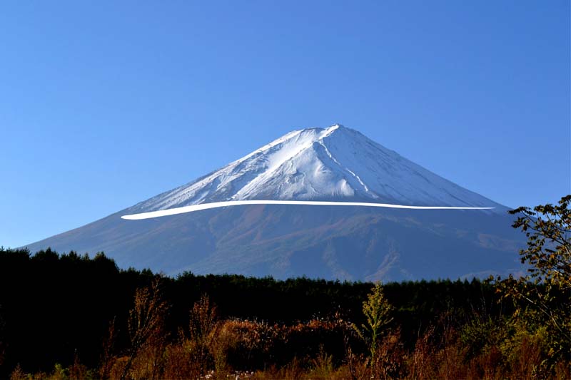 2012年10月 秋富士の雪形 旅の楽しみ、富士五湖高原からの「一文字富士」 |
