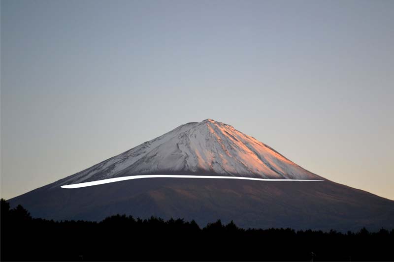 A 秋の雪形 一文字富士(富士河口湖町船津10/21 白線は筆者加筆)