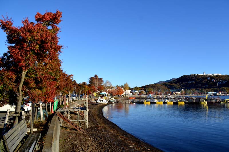 A すっきり秋空に湖畔の紅葉がまぶしかったです(山中湖11/4)
