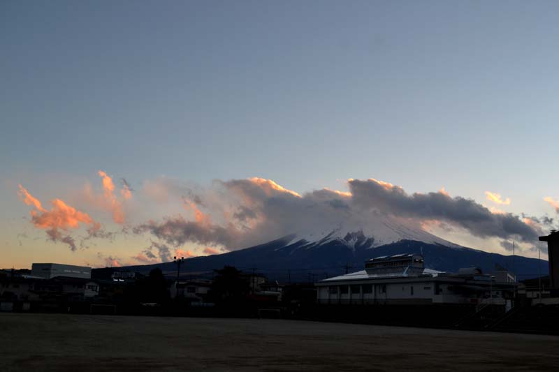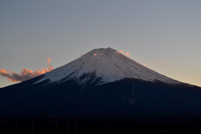 D 夕焼け雲を背にした富士(富士河口湖町船津鐘突堂12/11)