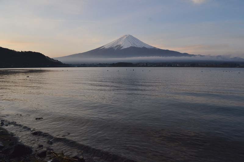 E 静かな湖畔の向こうにそびえる富士(富士河口湖町大石12/13)
