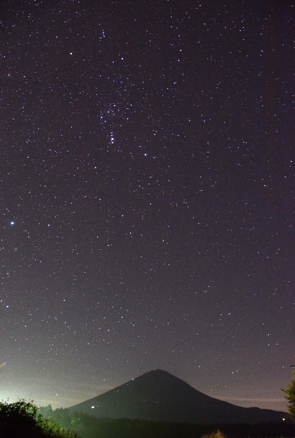 ↓富士山頭上に輝くオリオン座(2014年9月28日、鳴沢から)