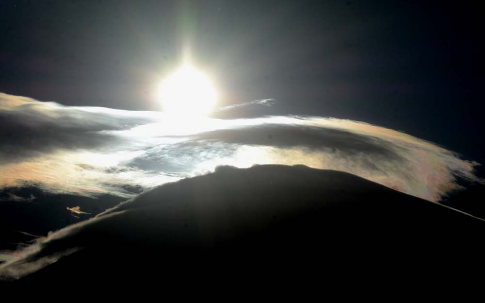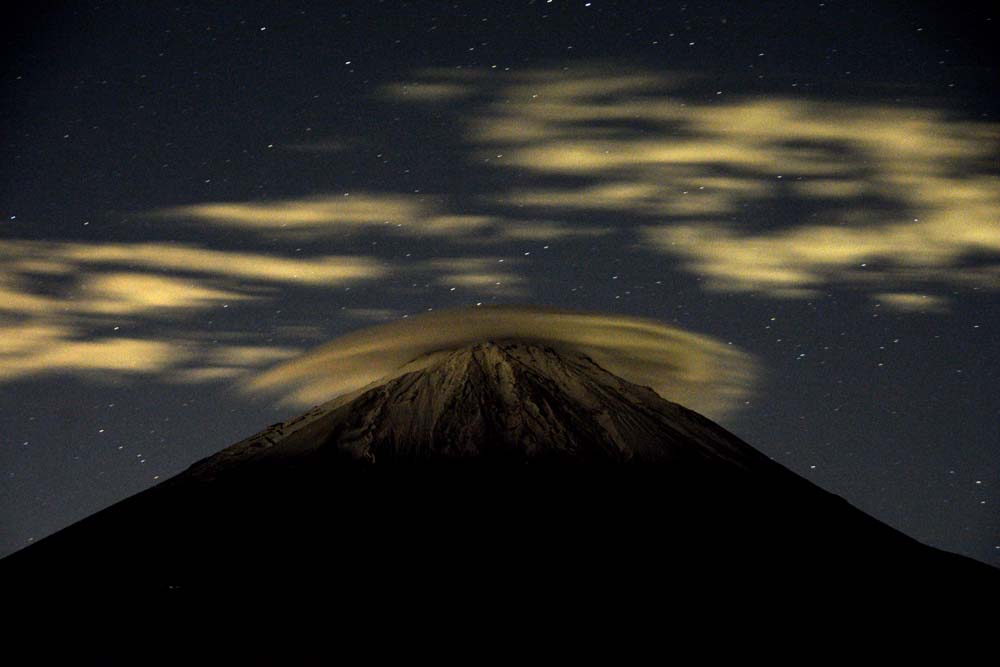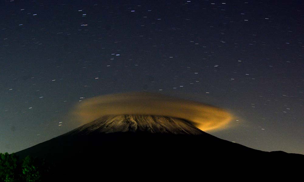 ↓光る笠雲(2014年10月16日、鳴沢から) |