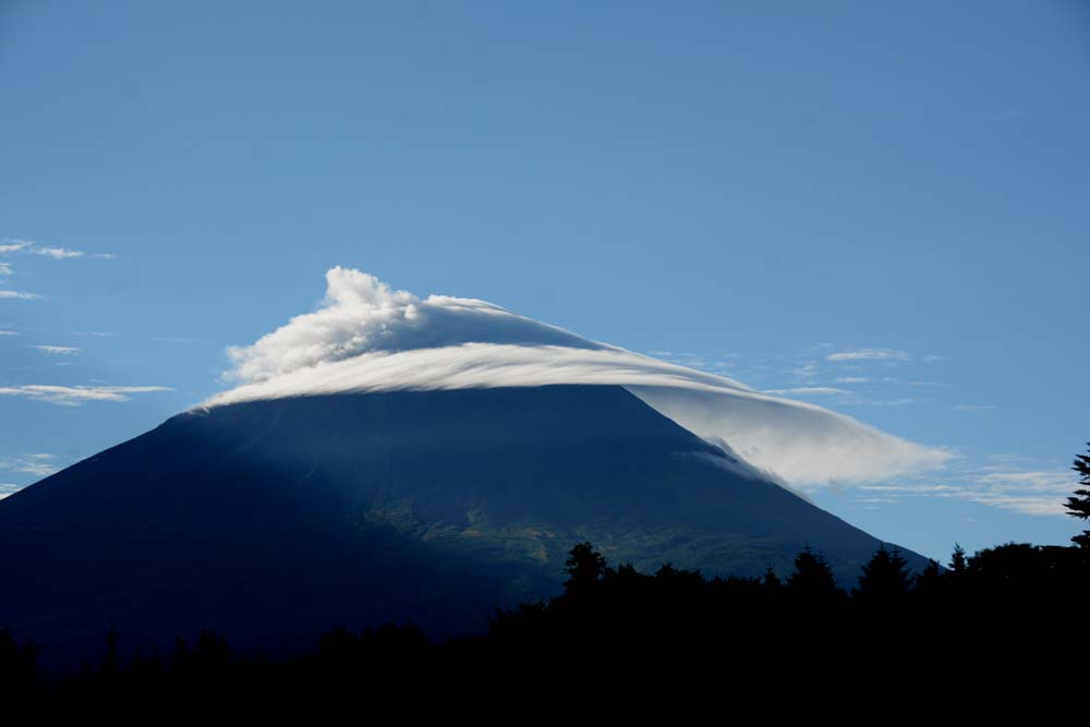 ↓貴婦人の帽子のような笠雲(2014年10月3日鳴沢村ひばりヶ丘から) |
