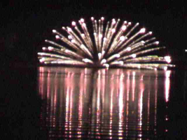 打ち上げ場所は夏と違って産屋ヶ崎の方でした。 夏に比べると午後8時から40分間だけで ちょっと物足りないけど、きれいでした。 最後は2月6日です。 左右の写真は水中花火 |