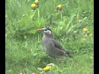 タンポポの色のようなくちばしを持つムクドリが舞い降りた。