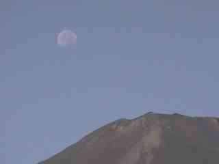 月が富士の頂上に沈む朝