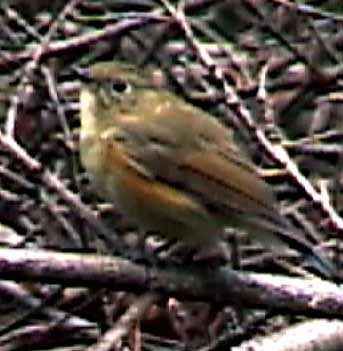 メボソムシクイは見た感じでセンダイムシクイと区別がつかない。この写真は吉田口登山道の3合目で撮ったが、その間鳴き声がほとんど取れなかった。従って、本当はセンダイムシクイかも知れない。しかし、ちょっとした声から多分メボソムシクイと聞き取れたのでメボソムシクイとした。