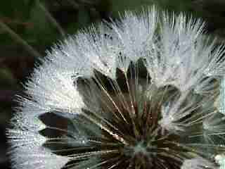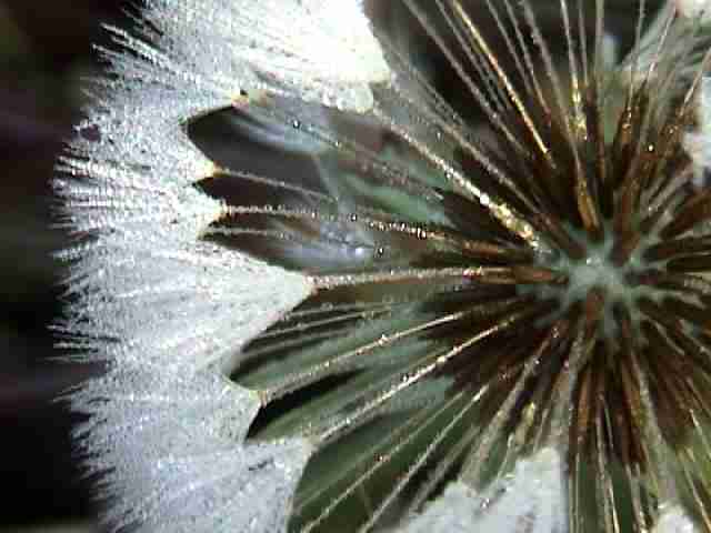タンポポの種(そう果)に 霜が降りて樹氷の ようになった「花」 |