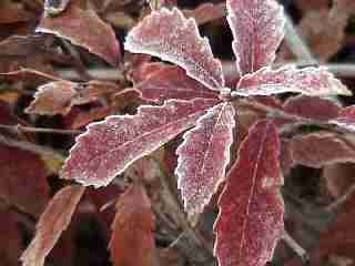 紅葉したミズナラに霜が落ちて デコレーションに砂糖をまぶしたような 矢車の「花」 |