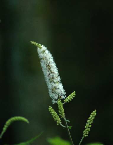 | 山野草も名前が分かると、もう少し楽しくなると思います。それにしても、山野草の名前は、どうして、誰が、いつ頃付けたのでしょうか。「ツリフネソウ」は姿を見ていると、なんとなく分かります。同じ形で、黄色と紫のものがあるので、黄色の方に「キツリフネソウ」とつけているのは紫の方が先につけられて、あとから黄色いのが見つかって「キ」をつけたのでしょうか。今後、もし、白いものが発見された場合は「シロツリフネソウ」なんてつけるんでしょうかね。 今9月中旬ですが、「サラシナショウマ」がニョキニョキと林の中に顔を出しています。 花の名前辞典によると和名では「晒菜升麻」と書き、若葉をさらして、食用にするので「晒菜」と呼ぶようです。「升麻」は漢方の根茎を乾燥したものの呼び名だそうです。「○○ショウマ」と呼ばれる山野草はたくさんあります。「レンゲショウマ」「イヌショウマ」「アカショウマ」「トリアシショウマ」などですが、どうして名前がついたか調べると面白いかも知れませんね。 |