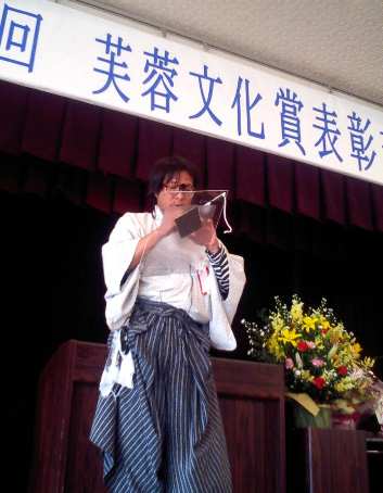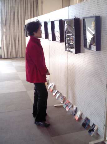 左のサルは瑞穂通信のために即興で製作(上の写真)していただいたものだ。表彰式後の記念講演会で講演をしながらの切り絵で、参加者からのリクエストに応えたものだが、チャンスと思い「サル」を希望して製作していただいたものだ。しかも無料でもらってしまった。ちょっとした宝物になった。あとで富士山も背景に入れてと希望すればよかったと思ったが、百鬼丸らしいサルで大変満足している。 下の写真は表彰式の会場の表紙画の切り絵と使われた小説、それを見学する参加者、2009年百鬼丸カレンダーにサインする様子や講演しながらの切り絵に真剣な表情の様子だ。 富士吉田私立図書館には百鬼丸コーナーがあり氏の切り絵を鑑賞できる。 |