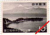 第二次国立公園切手(富士箱根伊豆) 「三つ峠からの富士」「芦ノ湖と富士」「大瀬崎と富士」(写真上) |