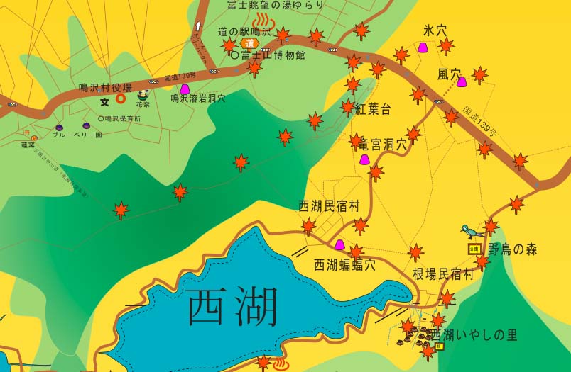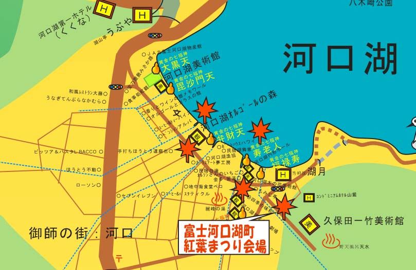 | 富士山・富士五湖観光圏整備推進協議会が紅葉スポットのスタンプラリーもしている。下記サイトが参考になる。 「実りともみじの富士五湖秋祭」スタンプラリー 富士みずほ通信の過去の紅葉記事も参考にご覧下さい 富士北麓の紅葉真っ盛り(2009年10月メロディロードの紅葉) 富士北麓の紅葉祭り 紅葉の秋(1999年11月河口湖畔など) |