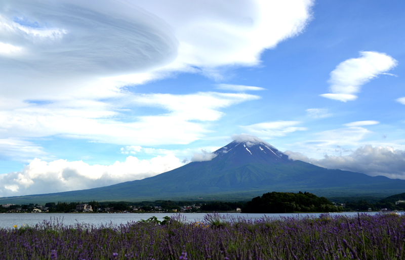 | 上の写真は2012年7月15日河口湖の大石公園から撮影したものです。 偶然でしょうか最初の鳴沢からのつるし雲と年は違いますが月日が同じでした。 こちらのつるし雲は「つばさ」ですね。 この時は7月16日〜17日快晴でしたが雲の動きは激しく、18日から曇り、20日雨になりました。 |
