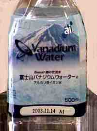 富士吉田市内のスーパーに置いてあった 「富士山バナジウムウォーター」(これはバナジュウム成分を多く含むとかで上の商品とはちょっと異なる位置にある) 最近東京のスーパーで「富士が作り出した」バナジュウムを多く含んだ水「バナアクア」と言う商品を販売していた。 そのパンフレットによるとバナジュウムが血糖値を下げると書いてある。普通の水ではないのかも知れませんね。 |