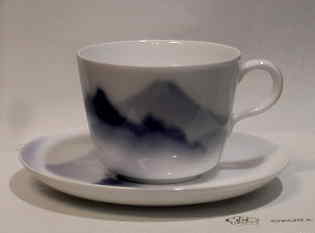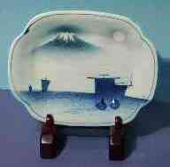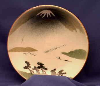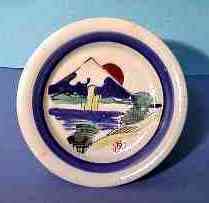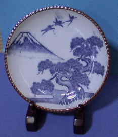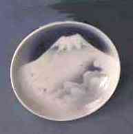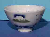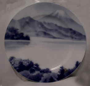 | 富士山はお正月やめでたいときに使われる器に好んで用いられる。しかし、明治、大正頃は日常の絵皿の図柄として良く用いられていたのだろうか、この頃の絵皿には富士が良くでてくる。茶碗にも富士山がでてくる。背景に軍国主義に国民を動員する手段として富士山が使われたと考えると悲しいのだが、横山大観が富士図を描いた絵を売って軍用機購入に当てていたのだから、このような側面があったことも否定できない。富士山は平和社会の象徴であって欲しいものである。「初めて富士山の姿を見て感動した」ことが富士図をラベルに描く理由になったとある酒造メーカーが語っているが、このような富士図が増えてほしいものである。 | ||||||||||||||||||||
