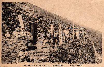 | ポストカードの写真は大宮口と題名があるので明治39年大宮口が新道として開設された後のものだ。奥宮の3枚は同じ頃と思えるポストカードを選んだ。しかし、いずれも大正時代のものか昭和初期のものかは不明である。上の地図は浅間大社が大正3年に発行した富士山明細図(一部)だ。高度は尺で記載されている。しかし、同社が昭和3年に編纂した「富士の研究N富士の地理と地質」P366の標高と微妙に異なっている。同じ合目で異なる標高になっている原因がどこにあるかは、もう少し調査してみなければ分からない。今回は、とりあえず手元にあった大宮口登山道のポストカードを紹介する。 | |||||||||||||