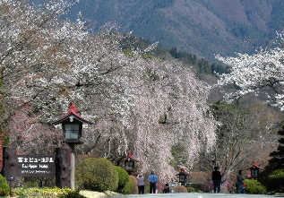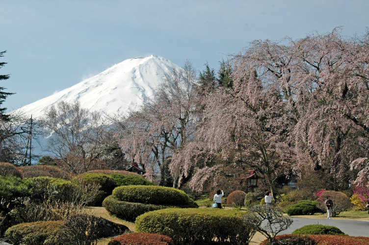 富士五湖地方も桜が満開を迎えています。 富士ビューホテルのしだれ桜は有名ですが、13日の雨あがりの後 14日朝は暖かく、快晴の一日でした。富士ビューホテルの正面玄関前には恒例のカメラの行列ができていました。 (左上から2枚) 富士吉田市の北にある富士浅間神社の参道の桜も昔からよく写真に撮られています。14日ここも満開でした。(写真下中央) 居合わせた人が右の写真のコケがさくらの幹にびっしりとついているのをさして「このカビが原因だよ、酢を薄めてまくと良いんだ」と言っていました。折角のさくらもこれではかわいそうです。本当の原因は分かりませんが、公園管理者に是非とも善処をお願いします。 (ネットで同じような桜の病気を調べてみると「こうやく病」と呼ばれる症状が同じようですが、もし、そうなら最悪伐採もありそうです。なんとかなると良いのですが。) |