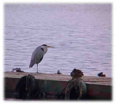| 上:アオサギ:大きな鳥だ。ゆったりと飛ぶが近くに寄ると飛び立つのでなかなか倍率の高い望遠でないとアップで取れない。止まっている時は上のように直立不動で実にバランス良く立っている。 |