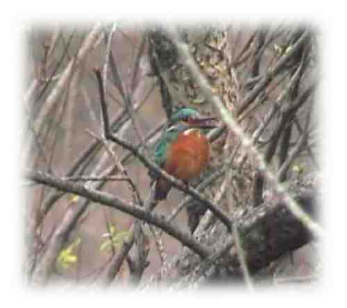 | ヤマセミ:冬、枝ばかりの木に止まってくれたので撮れたワンショットです。5年間でこれだけでした。ヤマセミも富士北麓にいる証明みたいなものです。(他の人がたくさん撮っているかもしれませんが・・・・) |