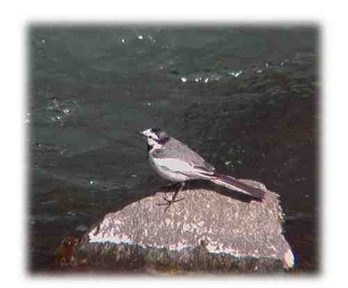 ハクセキレイ:下の水からかなり上流の大明見(あすみ)で撮ったものです。 この下の水周辺でもたくさん見ることができます。この他にキセキレイ、セグロセキレイなどセキレイは人に慣れ親しんだ野鳥ですね。 |