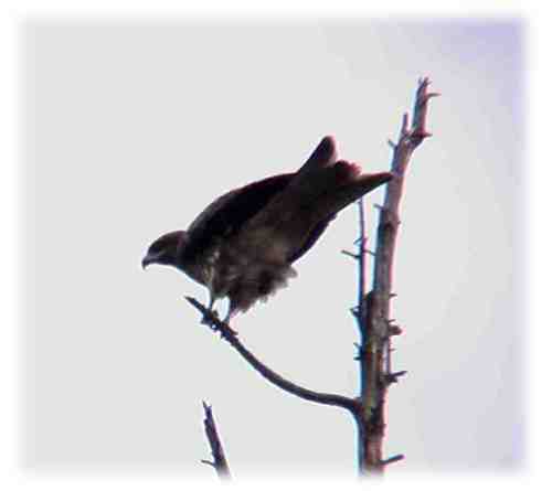 | トビ:ピーヒョロロロと鳴きながら円を描いて飛ぶトビ。下の水には集団で生息しています。近くで見ると、ワシタカの一種ですので鋭い嘴とつめを持っていて怖いぐらいです。遠くで眺めるのが適当な野鳥ですね。死んだ魚の内臓など良く食べるようですので下の水は絶好の餌場なのでしょう。 |