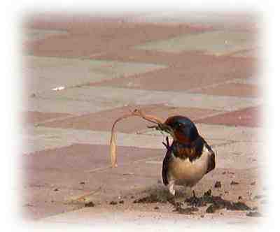 | ツバメ:ツバメの飛来は夏を告げます。コンビニの軒で巣づくりに一生懸命なツバメです。 |