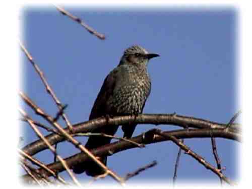 | ムクドリ:愛嬌がある点は他の野鳥と同じですが、場所によってはカラスやハトと同様嫌われている野鳥です。その場所とは、この鳥のねぐら周辺です。どうしてか知りませんが、ムクドリは人家の近くの大木を集団でねぐらにします。夕方から夜にかけて、そのねぐらは木の葉よりムクドリが多いんではないかと思うほど群がります。ギャーギャーと言う鳴き声を何百羽が一斉に発するとものすごい音になります。そして、糞です。大木の下は円形に真っ白になります。最もこのような被害は都市部のねぐらが少ない場所でムクドリが集中するために発生しているようですので、富士山麓ではあまり顕著ではありません。野鳥との共生は都市づくりとも関連がありそうですね。 |