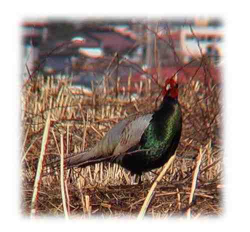 キジ(オス):ケーンケーンと言う鳴き声で遠くにいても良く分かる鳥です。国道などで交通事故にもあう程人里にいます。富士吉田の竜ヶ丘でも良く見かけます。 上は忍野村内野で撮ったものです。 |