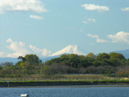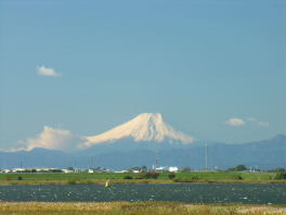 左は渡良瀬遊水池をはさんで古河寄りからの富士山です。近くの古河駅や駅前の高層ビル屋上からも富士山が大きく見えます。