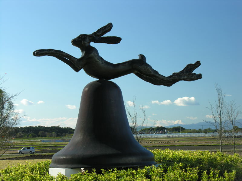 左は多々良沼の東にある館林博物館前のモニュメント、右下のはるか向こうに富士山が見えます。