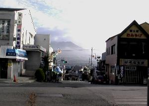 現在富士吉田駅はイトーヨーカドーが入る駅ビルとなっている。(2009年時点ではQスタビルに変更)電車で大月から富士吉田に入ると進行方向に向かって富士山は左側に見え、やがて駅に侵入するころになると右側に見える。だからと、早合点して改札口から右に折れないで左に進んで欲しい。駅の改札を出て左が富士吉田駅の玄関口になっている。やや広い駅前広場にタクシーが並んでいる。駅前広場の北側一角はバスターミナルで中央高速バスを始め甲府方面や三島方面など四六時中バスの出入りがある。駅ビルを出るとすぐに急な下り坂があり、前方に松山地区から下吉田地区に並ぶ家並みの屋根を見ることができる。(写真上)富士吉田は坂の街なのだと痛感する。瀬戸内のように上り下りの激しい坂ではなく、下りっぱなしの坂なのだ。東京方面から見ると上りっぱなしとなる。富士の裾野に広がる街なのだ。 |
