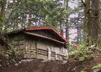 登山道の両側にはこれまでとは異なる植物が顔を見せる。特に多いのはヤグルマソウ(写真左)だ。秋には山トリカブトの花が目立つ。その他コウモリソウ、テンニンソウ、ヤマアジサイ、トリアシショウマなども咲いている。鈴原神社(写真右)はひっそりとしている。江戸時代にはここに大日如来を祀る大日堂があったという。江戸時代の富士紀行(安永9年 1780高山彦九郎著)によると脇に「天照大神」が祀られていたようである。鈴原神社となるのは多分明治からではないかと思うが現在は「天照大神」のみが祀られている。神社と道路を挟んで小さな鳥居があり、その手前から階段が下っている。旧登山道だ。馬返しからの入り口は分かりづらい旧道だが、この階段から下ると草が踏み固められていてなんとなく道がある。旧道は下りの方が分かりやすい。さて、鈴原神社を後に登山道を進む。ますます頭上の梢がかぶさり、薄暗くなる。登山道脇にはコケが増えてくる。登り方向右側は沢になっているので樹海の中のような暗さはない。急だがゆっくり登山には最適な登山道だ。ちょっと脇にそれると、ヤグルマソウとコケの群落がある。ただ、展望は良くない。大正、昭和のはじめにはこのあたりから河口湖が望めたようであるが現在は樹海の中である。富士登山だから富士山頂が見えるかと思っているとこれも見えないのでがっかりする。富士山頂を望むのは樹木がなくなる5合目以上だ。その代わり、樹木や野草、野鳥の観察には最適だ。