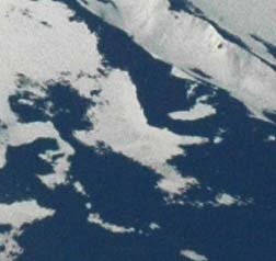 | 白馬(農牛) 私は以前これを白馬と呼んだが、先輩諸氏はこれを「農牛」と呼んでいたようだ。 聖徳太子が富士山頂に昇ったのは黒駒だったが、白馬もロマンがあって良いように感じる。 農鳥になる直前に現れる。(このページトップの写真参照、右は白馬拡大図) |