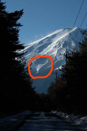 | 富士の楽しみ 雪形 その3 富士北麓に恐竜発見!!! 雪形ですけどね・・・・・・ |