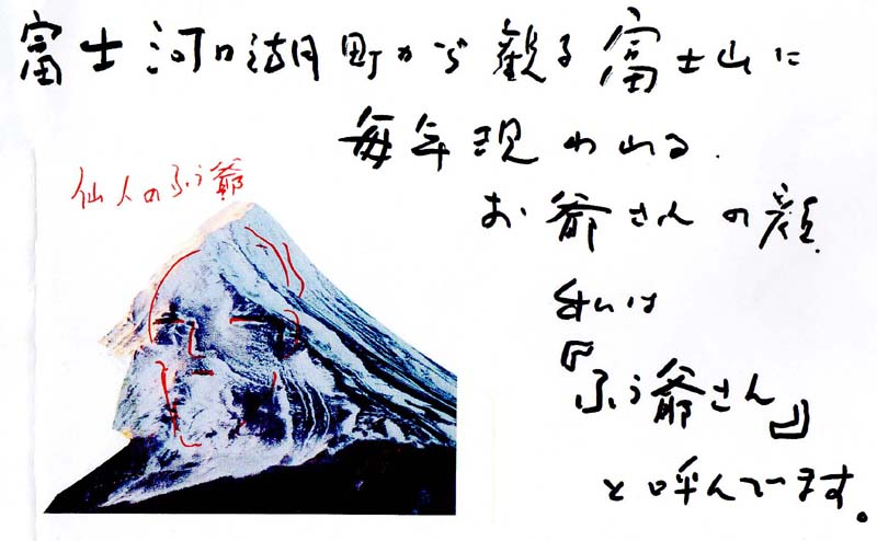 | 富士の楽しみ 雪形 その4 前田康成さんの発見した雪形 「ふう爺さん」 |