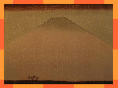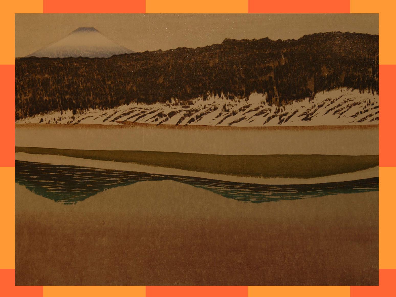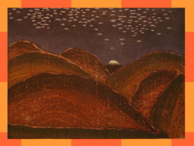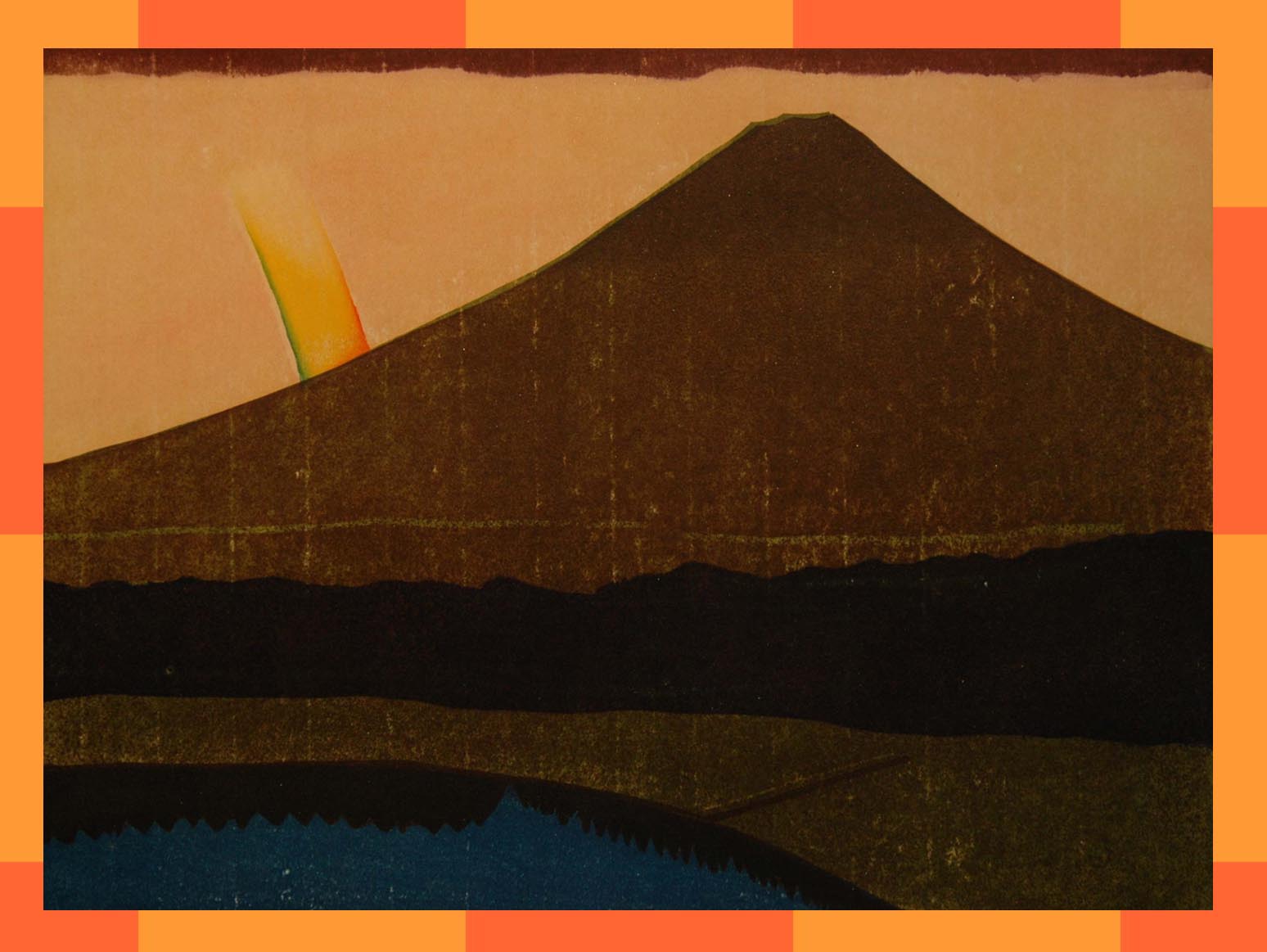 萩原英雄は山梨県甲府市に生まれた木版画家だ。抽象画家だと思っていたが三十六富士を見て、必ずしも抽象画家でないと思い、この富士山画に興味を持っていた。氏は著書の中で「具象だとか抽象だと分けるのは、おかしなことだ」「心を打ってくれるもの・・それが絵の価値を決めるのだ」(「美の遍路」より)と述べている。もう一度萩原英雄の絵を見直して見たいと思い直した。 |