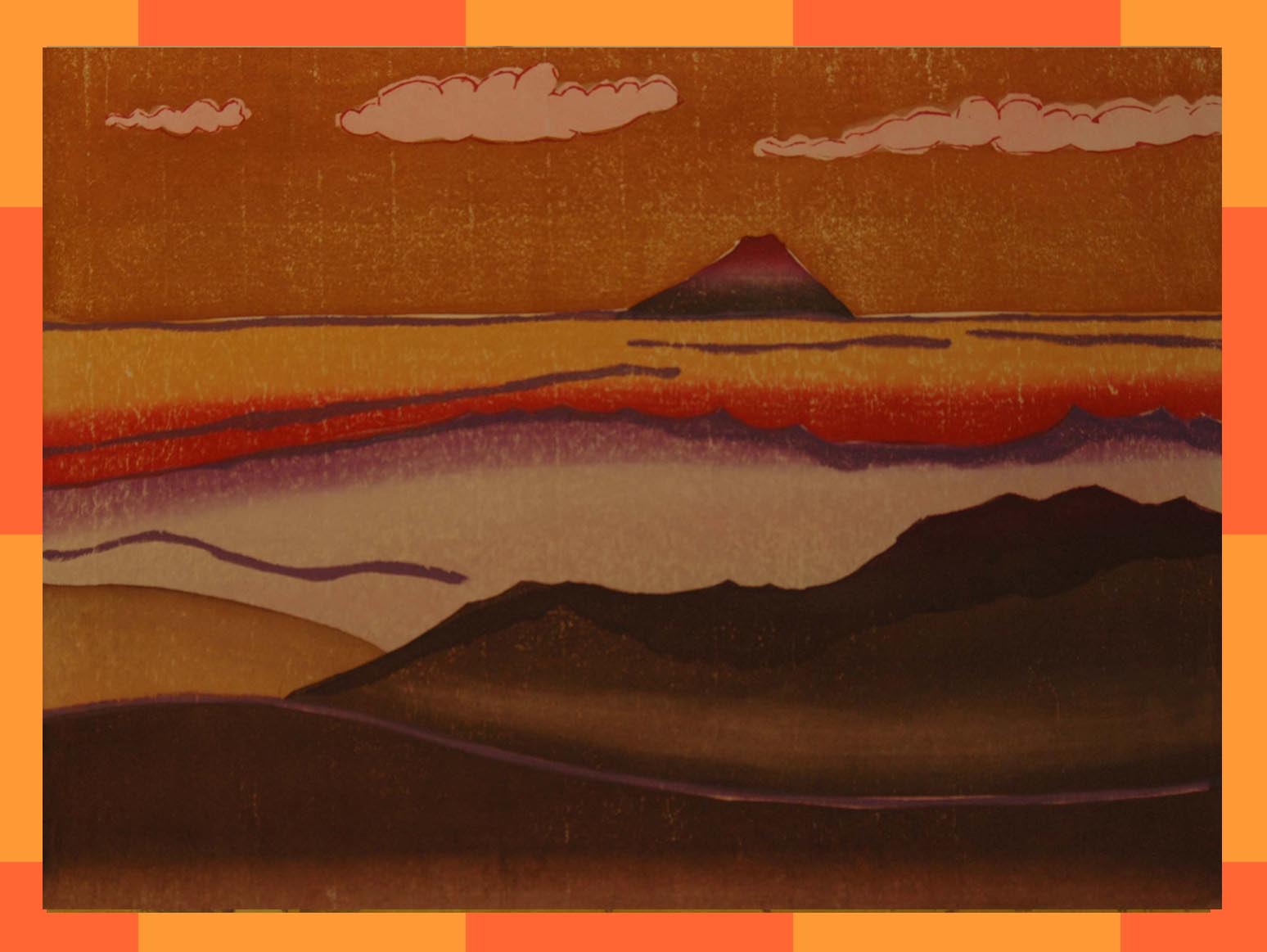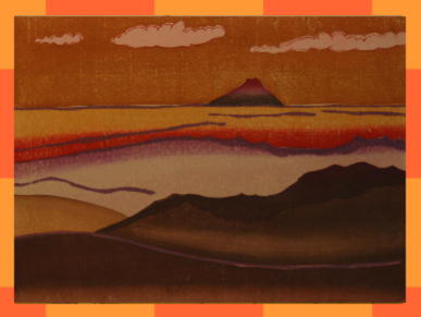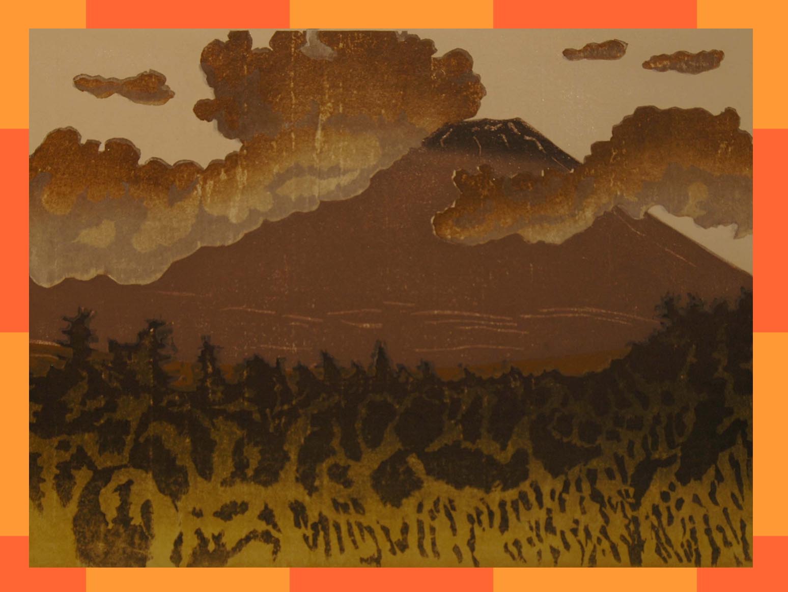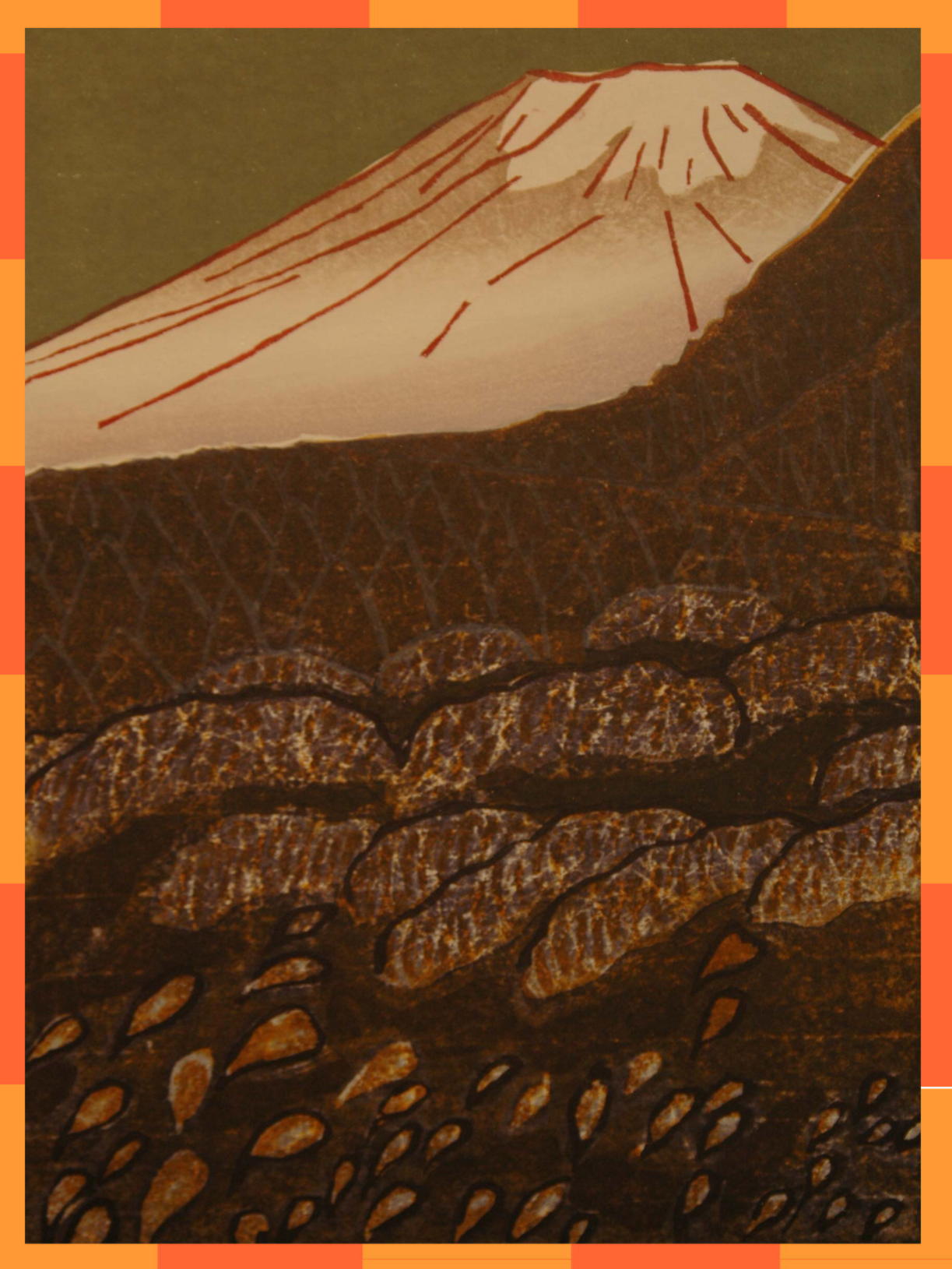 萩原英雄は山梨県甲府市に生まれた木版画家だ。抽象画家だと思っていたが三十六富士を見て、必ずしも抽象画家でないと思い、この富士山画に興味を持っていた。氏は著書の中で「具象だとか抽象だと分けるのは、おかしなことだ」「心を打ってくれるもの・・それが絵の価値を決めるのだ」(「美の遍路」より)と述べている。もう一度萩原英雄の絵を見直して見たいと思い直した。 |
