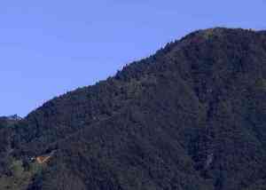| 杓子山は富士吉田市の東側にそびえる標高1598mの山である。標高は隣の鹿留山1632mの方が高いが、富士吉田からは杓子山が手前となり高く見えるのと、登山しやすいのとでなじみがある。今回はこの杓子山に登った。 |