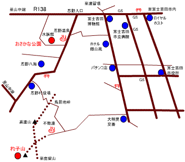 忍野と杓子山の略図 |
