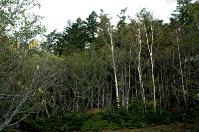 | 空が広がる五合目下、シラカバやミヤマハンノキが目立つ | |||||||||||||||||||